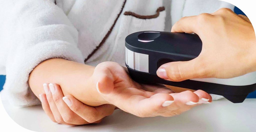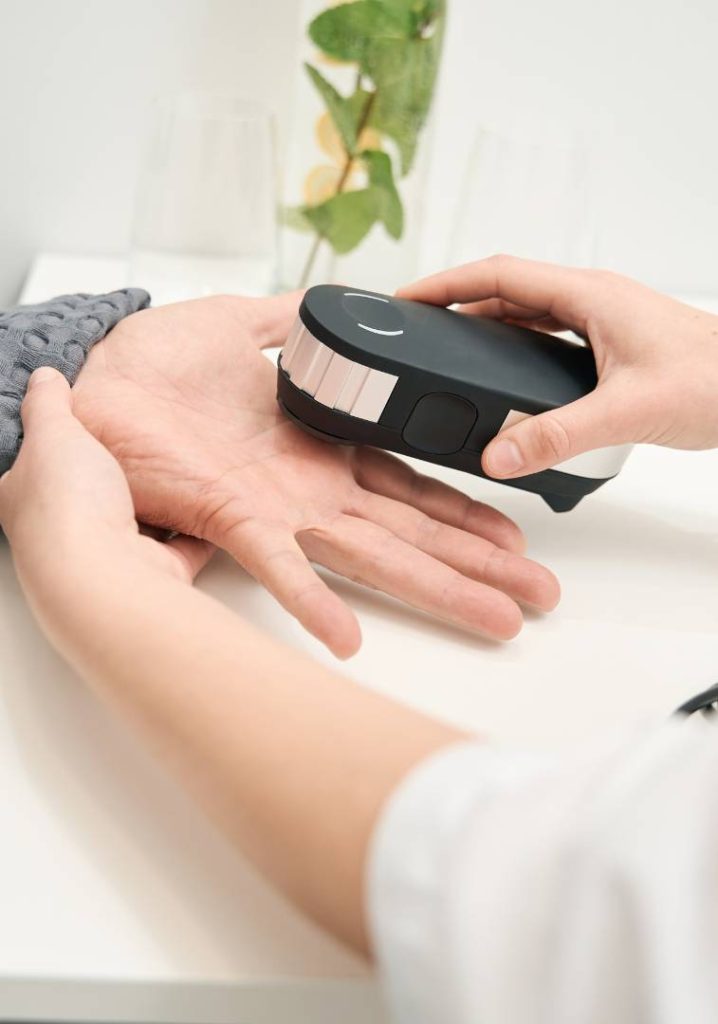 Cette technique consiste à mesurer l’absorption, la réflexion ou l’émission de la lumière par la matière. La mesure est réalisée de manière rapide et indolore sur la peau de la paume de la main, zone fortement vascularisée et représentative de l’équilibre tissulaire global.